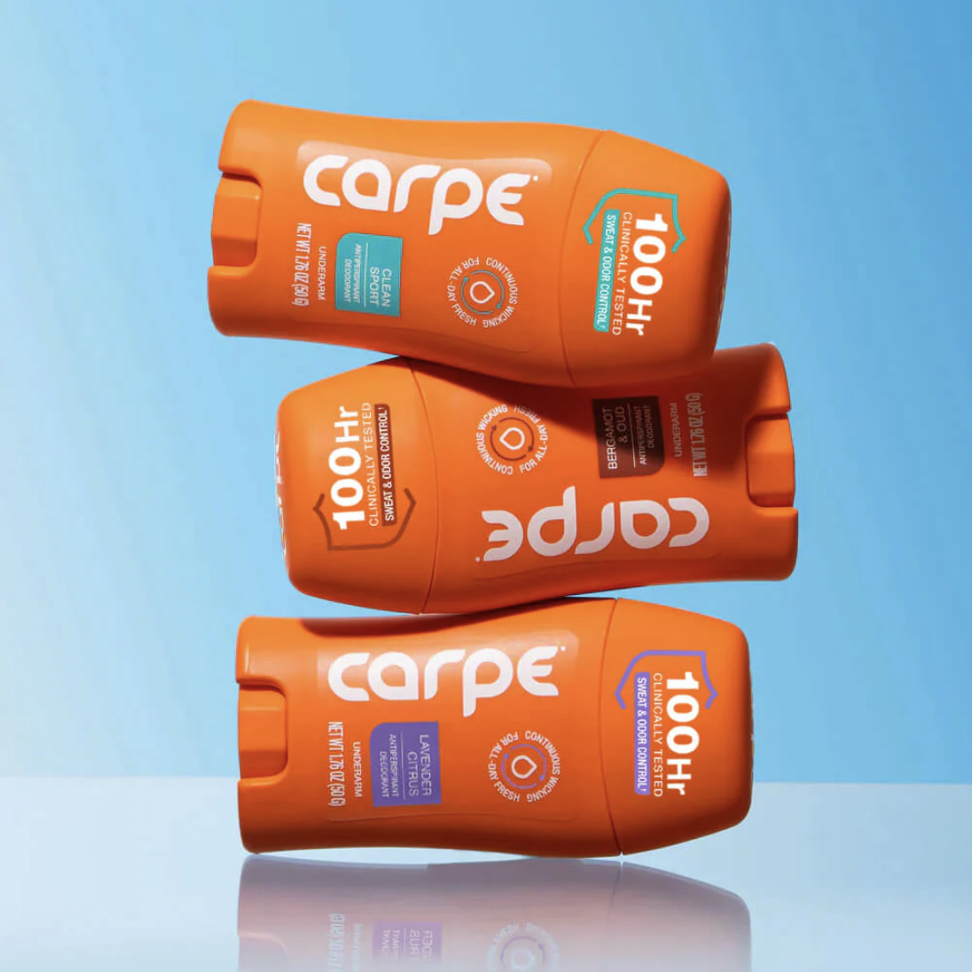 CARPE is an anti-perspirant company with products that combat sweat and odor throughout the body.